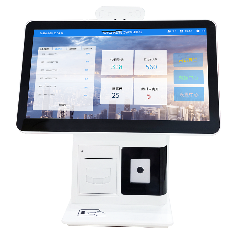新款EST-R5雙屏智能訪客機在園區門衛安裝使用,EST-R5雙屏智能訪客一體機是一款基于Windows操作系統開發的一體化訪客登記終端,可預約來訪登記、現場臨時登記、認證比對、掃碼/刷身份證簽離、聯動…